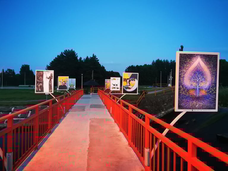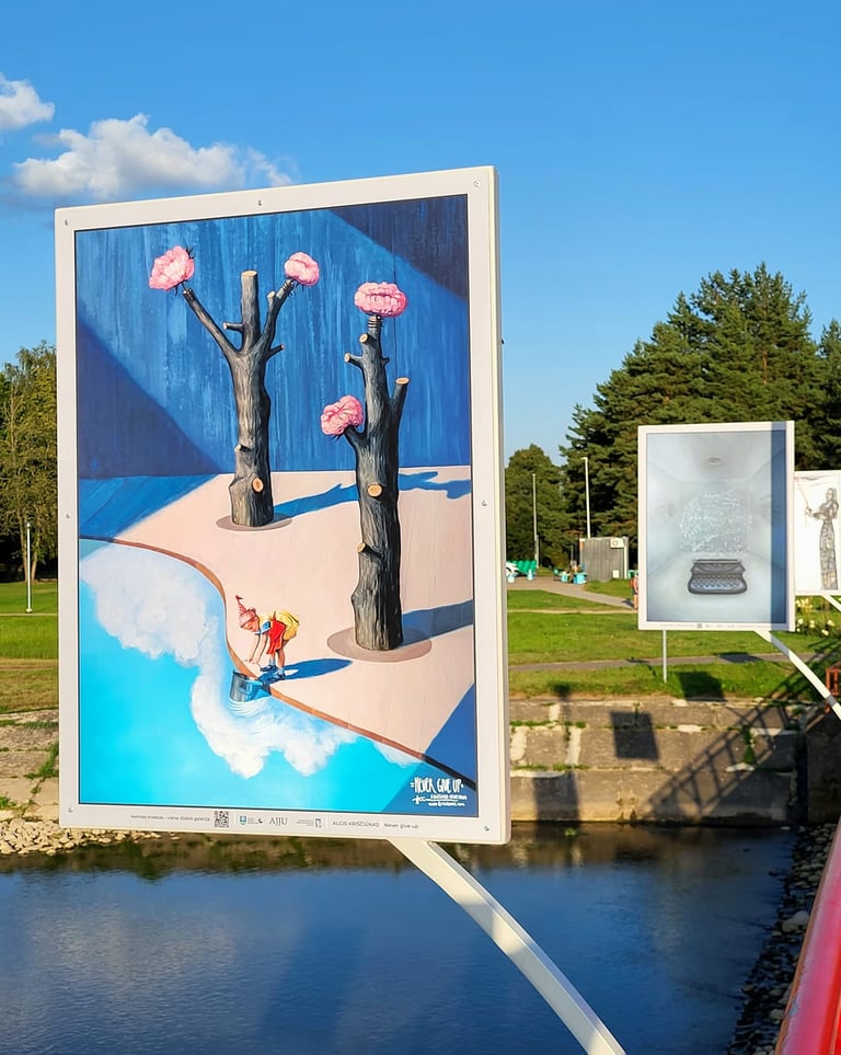Dabar pasvajokime. 550 kūrinių vienoje galerijoje. Daug, taip? O jei jie būtų netikėčiausiose vietose, pavyzdžiui: ant pastato sienos, miesto centre ant molberto, kabantis ant tilto ar net pastatytas ant užtvankos. Jei ši galerija dirbtų 24 valandas per parą, visus metus, o įėjimo kaina - 0 Eur. Žymiausių Lietuvos bei pasaulio menininkų kūriniai vienoje vietoje.